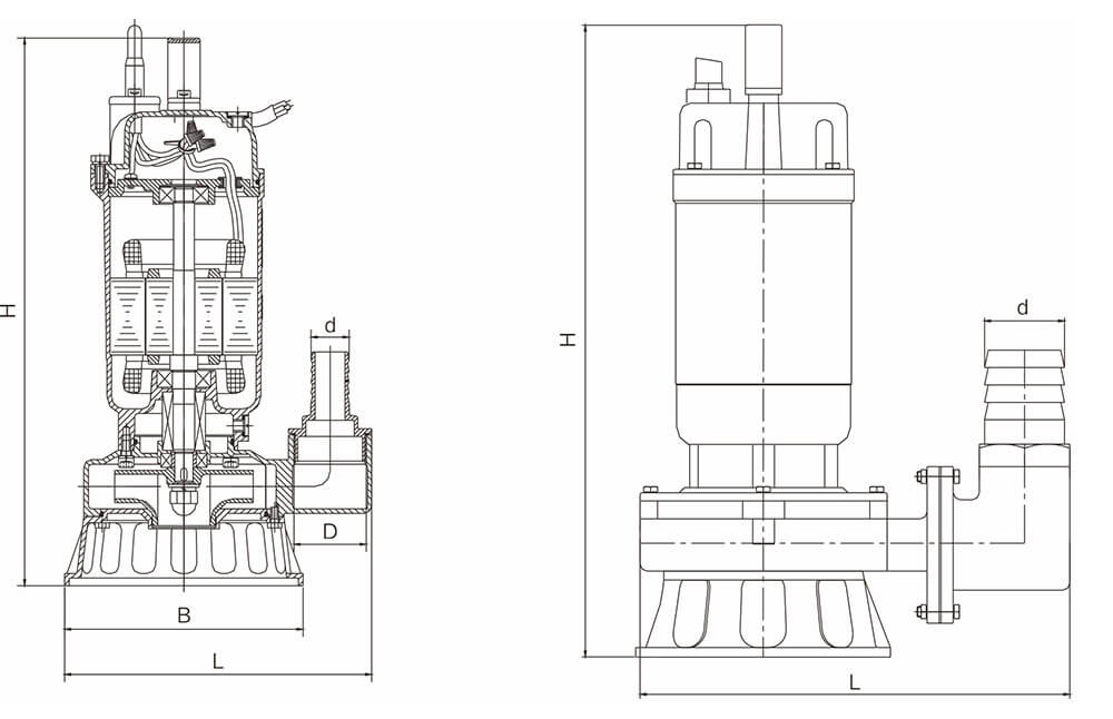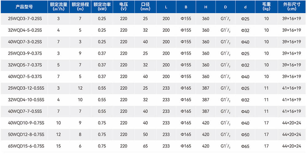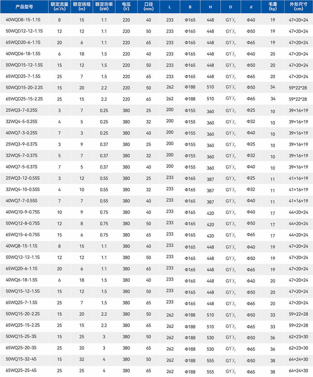 WQ(D)-S系列全不銹鋼精密鑄造污水污物潛水電泵采用獨特的單、雙流道式葉輪結(jié)構(gòu),大大提高了污物的通過能力。