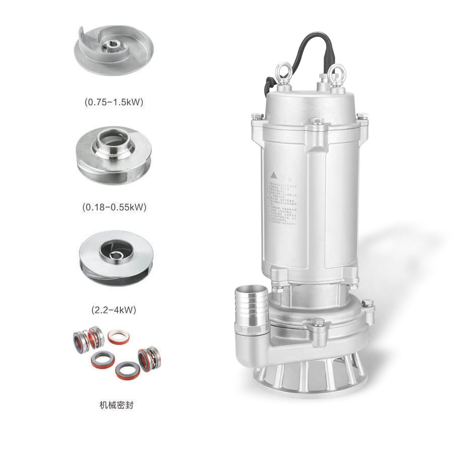 WQ(D)-S系列全不銹鋼精密鑄造污水污物潛水電泵采用獨(dú)特的單、雙流道式葉輪結(jié)構(gòu),大大提高了污物的通過(guò)能力。